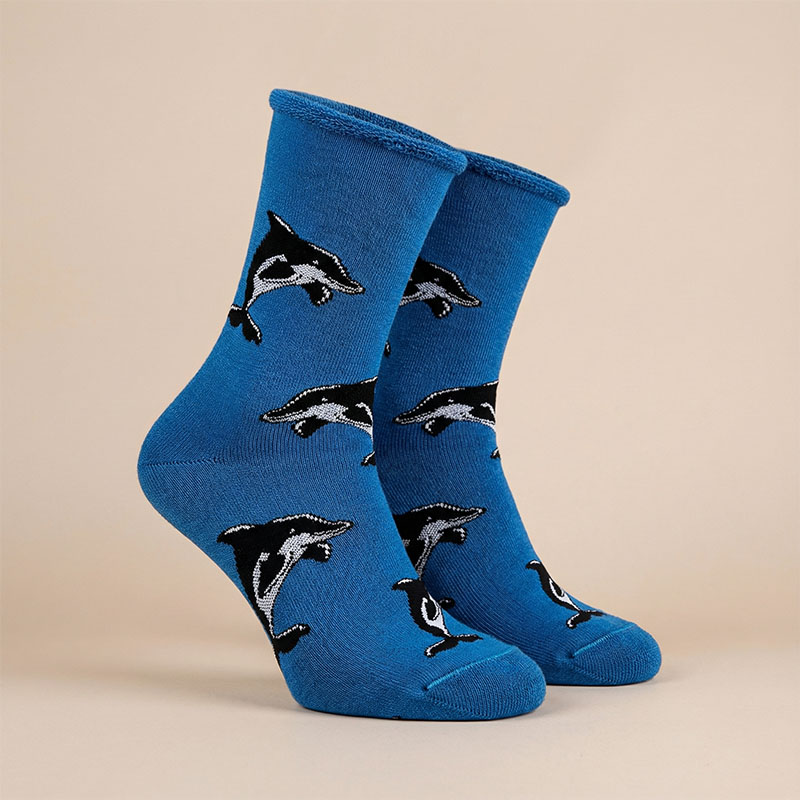 Nämä sukat ovat täydellinen valinta niin arkeen kuin lomalle. Delfiinikuosi tuo hymyn huulille ja iloa jokaiseen askeleeseen. Tilaa omasi nyt ja koe merinovillan ja akryylin harmoninen yhdistelmä – sukat, jotka ovat yhtä leikkisät kuin mukavatkin!